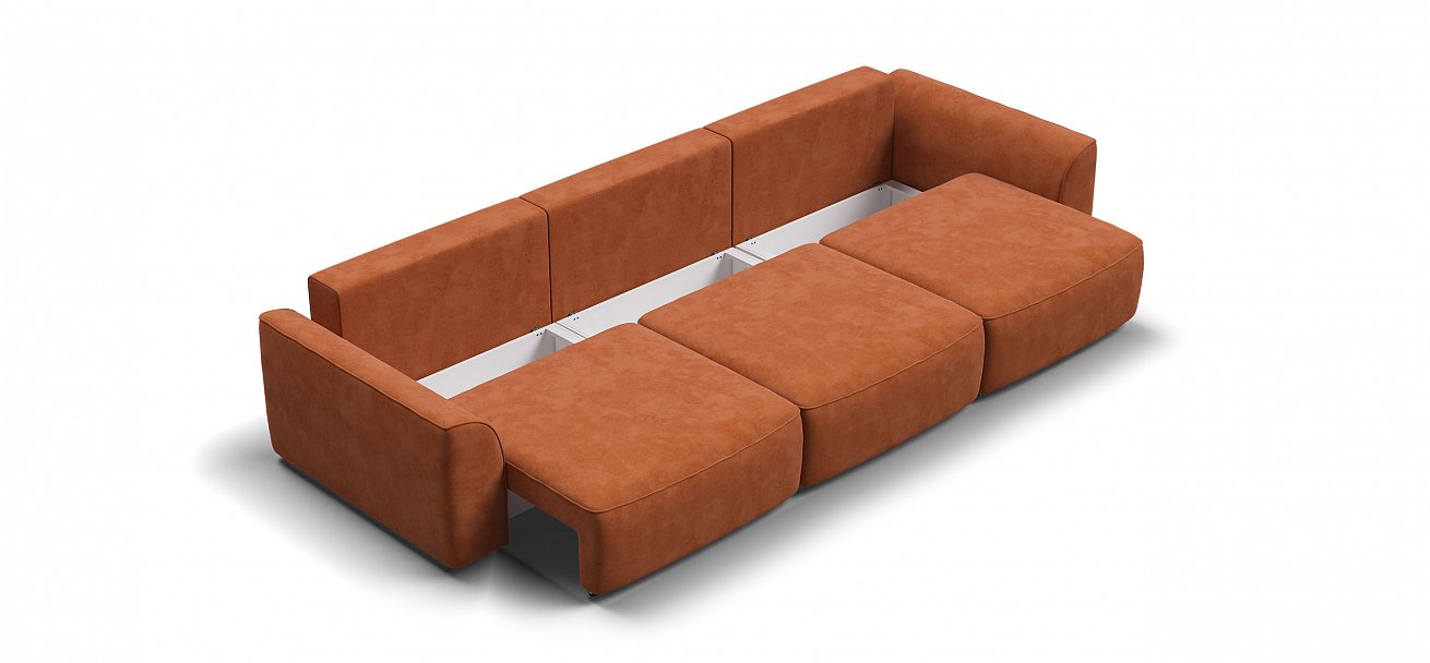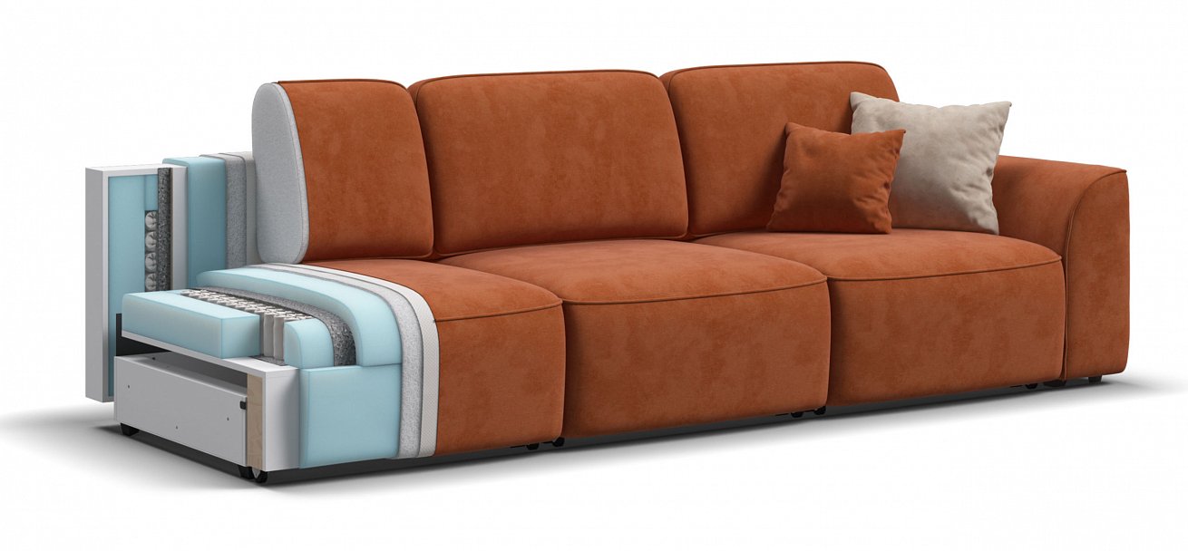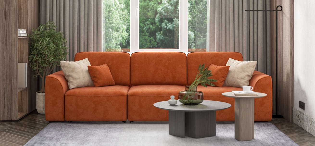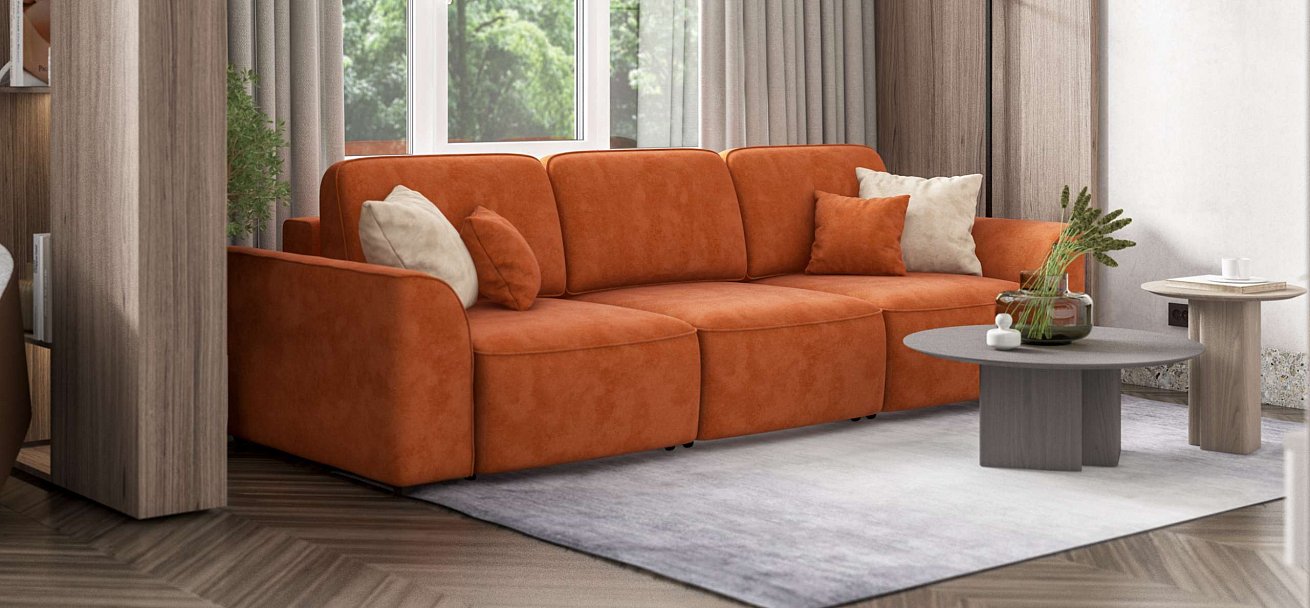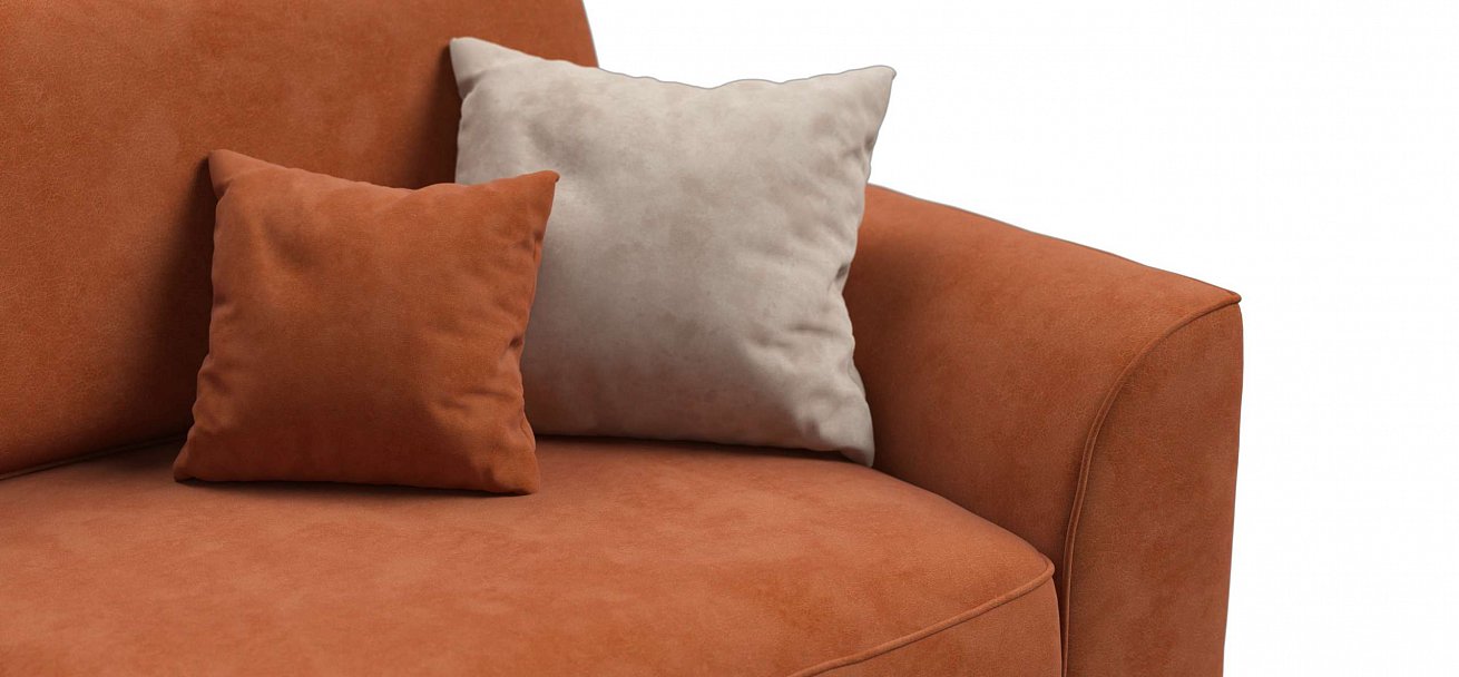 Яркий, насыщенный цвет оранж добавит интерьеру энергии, тепла и современного акцента, гармонично сочетаясь с нейтральными тонами и деревянными элементами. Диван нельзя использовать без подлокотников — это гарантирует долговечность конструкции.