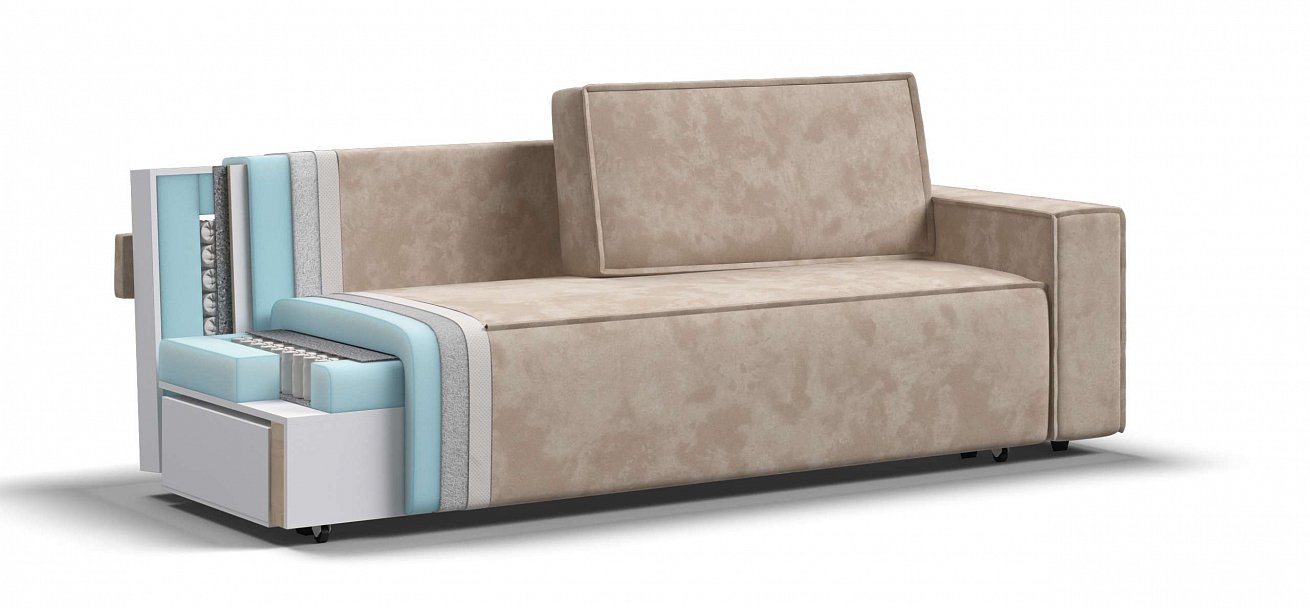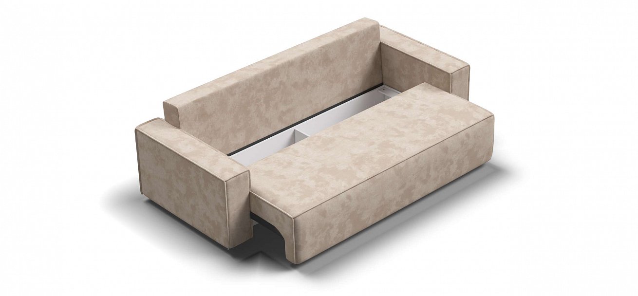 • Бельевой ящик под сиденьем — скрывает всё лишнее: одеяла, подушки, постельное бельё — и сохраняет интерьер безупречно чистым