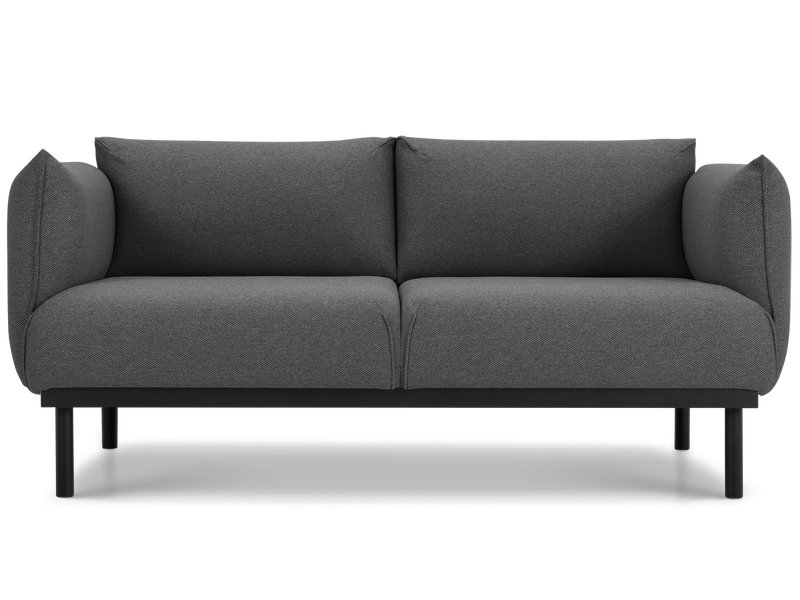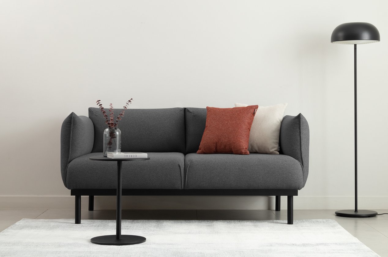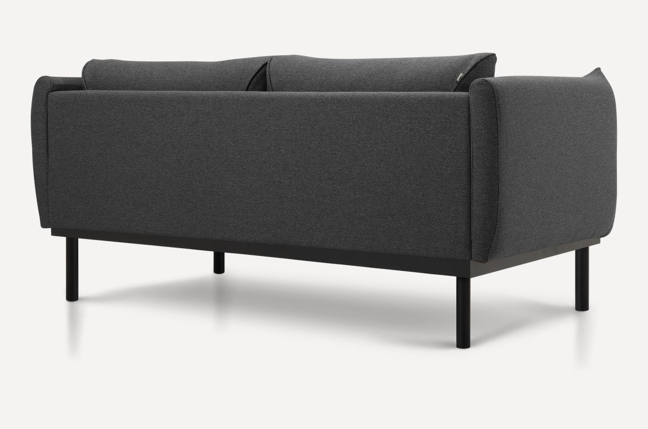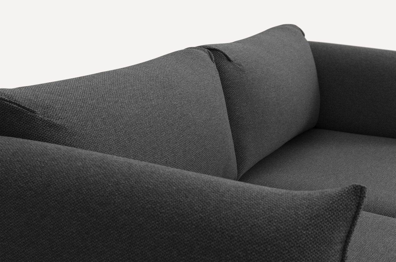 Дизайн дивана без механизма трансформации и без ящика для белья подчёркивает его философию — чистый, незагруженный функционал и минималистичная эстетика. Металлические опоры чёрного цвета приподнимают корпус на 20,5 см, облегчая уборку и визуально «разгружая» пространство.
