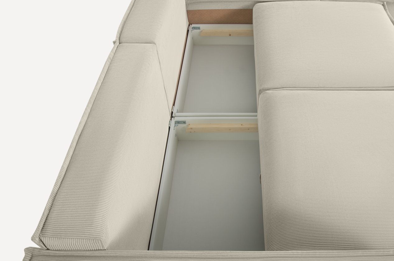 Встроенный ящик для белья в канапе — практичное решение для хранения постельного белья, пледов, подушек или сезонных вещей. Никаких лишних шкафов. Только чистая функциональность, встроенная в эстетику.